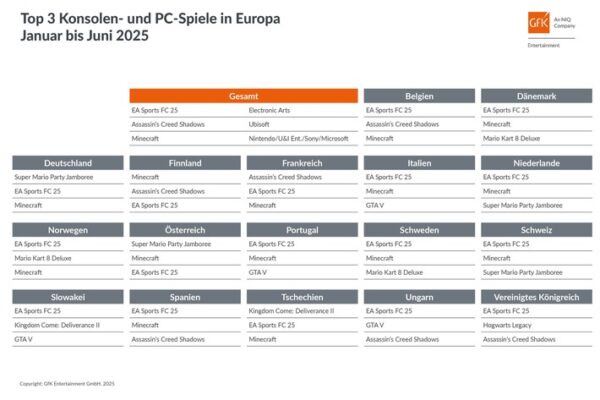 Baden-Baden (ots) – „EA Sports FC 25“ war europaweit das meistverkaufte Videospiel der ersten sechs Monate 2025. Dies zeigen die…